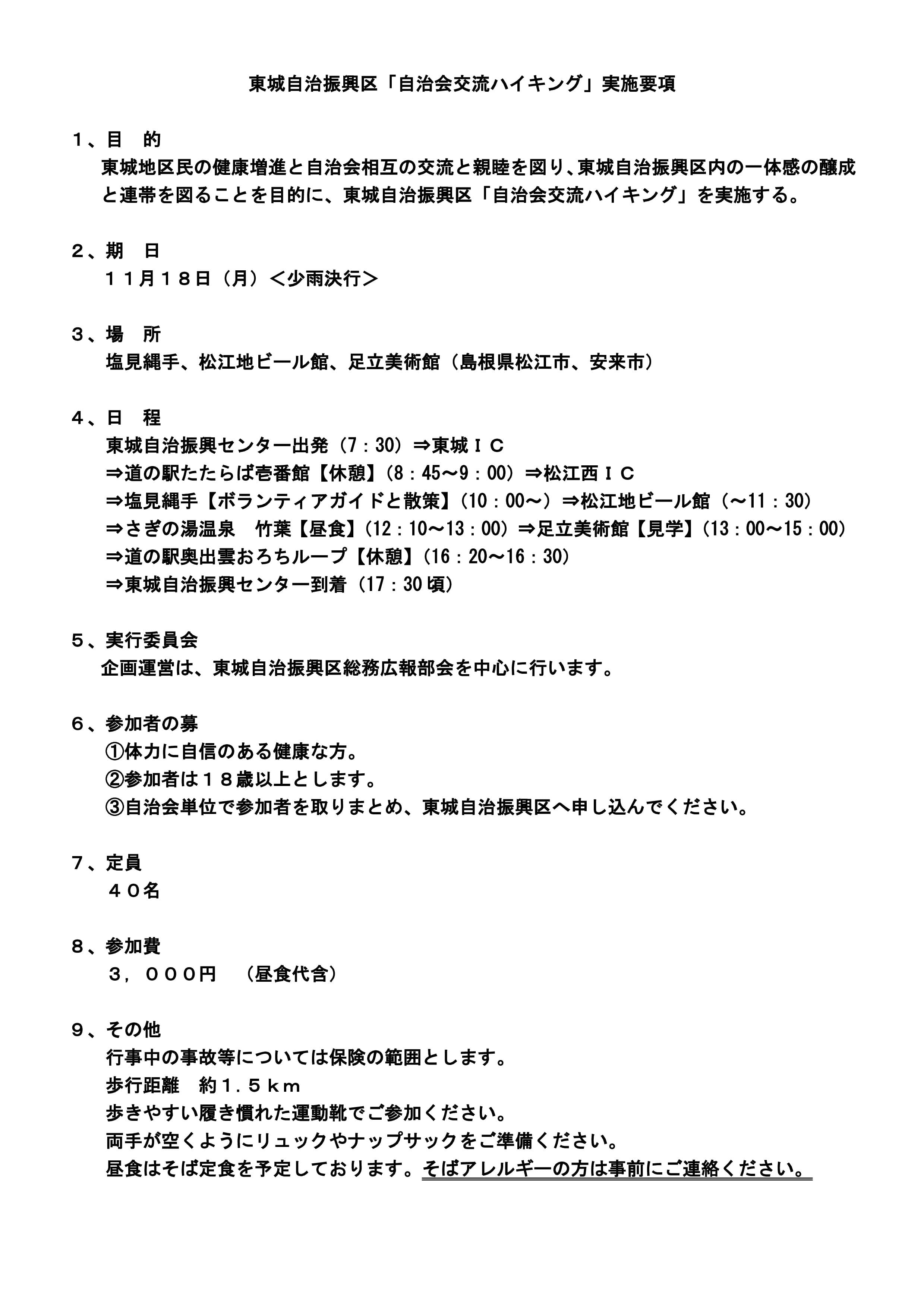 東城自治振興区「自治会交流ハイキング」実施要項 (PDF)