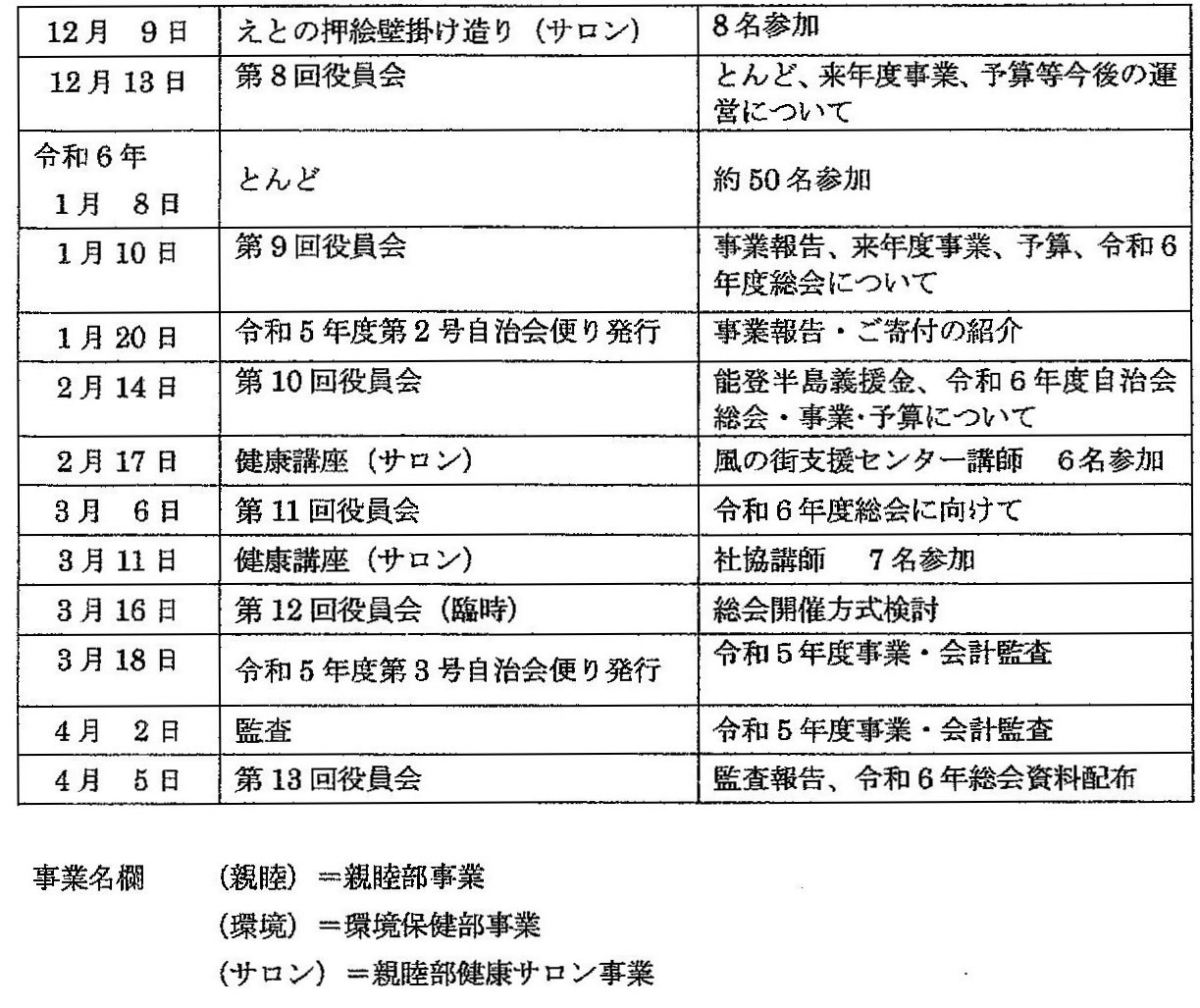 ・ 総務部 ・敬老会・自治会だより(年4回)